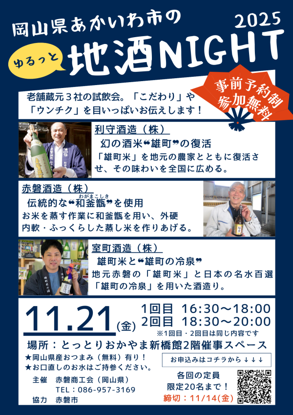 岡山県赤磐市(あかいわ)の蔵元の方から、直接、こだわりやうんちくが聞けるチャンスです。
