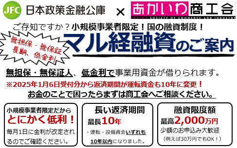 なお、この融資制度は小規模事業者に無担保・無保証人、低金利で事業用資金を供給するための国の制度です。