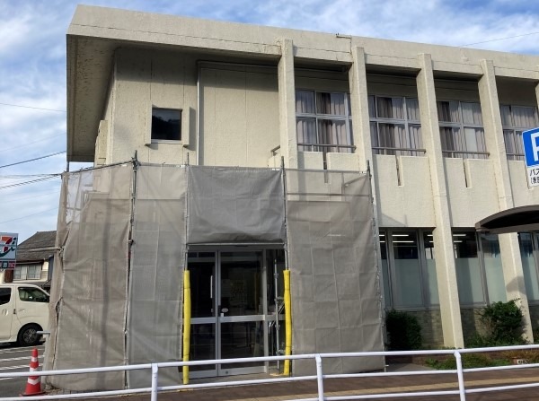 瀬戸支所の建物修繕がスタートし、玄関周りには足場を組みました。 また、駅側の駐車場は工事車両が停まりますので、ご来会時に使えない場合がございますのでご注意ください。 なお、工事は12月中には終わる予定です。 当面、ご不便をおかけしますがご理解、ご協力をお願いします